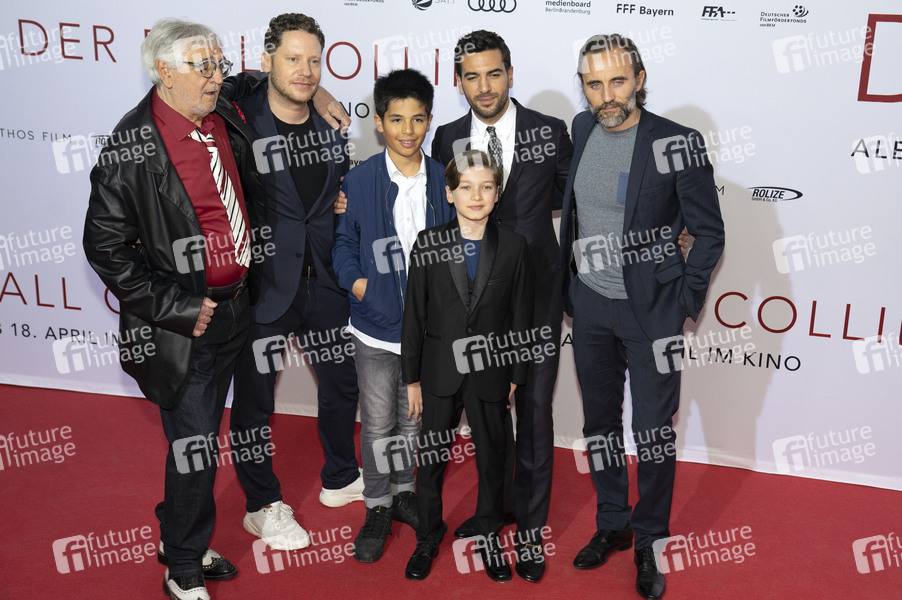 Sandro Di Stefano, Director Marco Kreuzpaintner, Titus Flügel, Elyas M'Barek, Leonardo Orsolini und Stefano Cassetti bei der Premiere des Kinofilms 'Der Fall Collini' im Mathäser Filmpalast. München, 11.04.2019