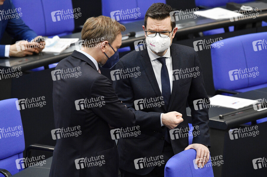 Christian Lindner und Marco Buschmann in der 218. Sitzung des Deutschen Bundestages im Reichstagsgebäude. Berlin, 25.03.2021