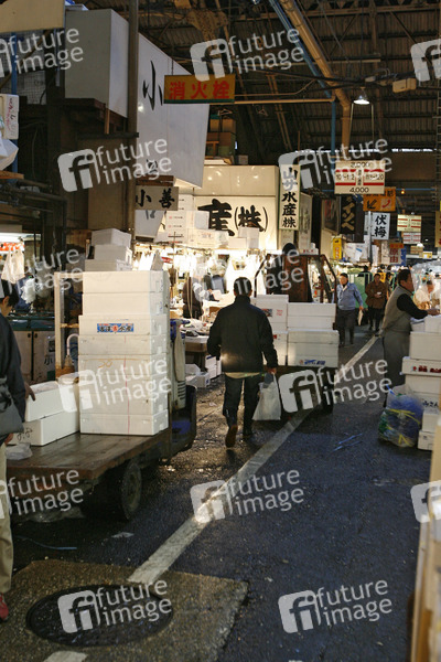 Sightseeing Tokio. Auf dem Tsukiji-Fischmarkt im Stadtbezirk Chuo