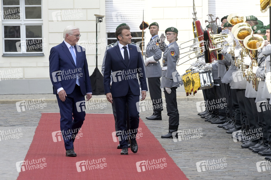 Frank-Walter Steinmeier und Emmanuel Macron beim Empfang des Staatspräsidenten der Französischen Republik mit militärischen Ehren im Schloss Bellevue. Berlin, 26.05.2024