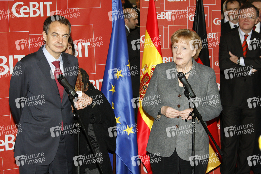 Eröffnungsrundgang von Bundeskanzlerin Merkel und Spaniens Ministerpräsident Zapatero auf der CeBIT 2010 (Centrum der Büro- und Informationstechnik), der weltgrößten Messe für Informations- und Computertechnik auf dem Messegelände in Hannover.