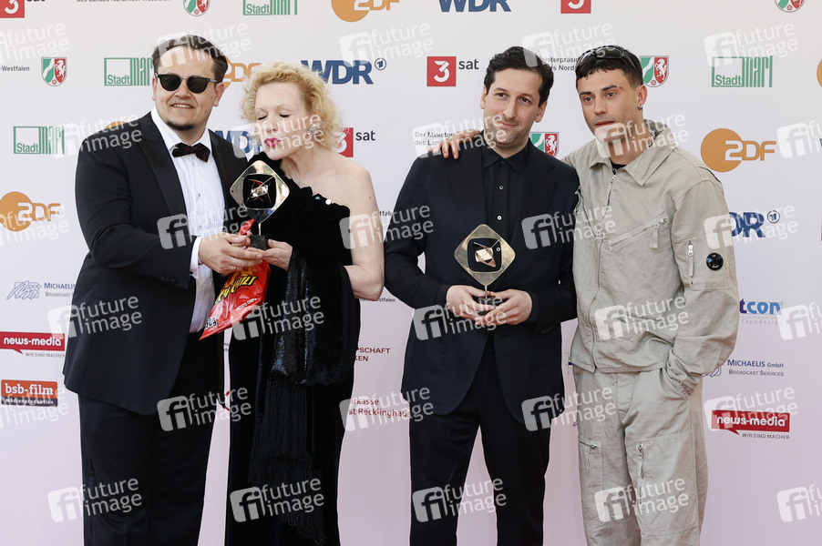 Martin Danisch, Sunnyi Melles, David Hadda und Aaron Altaras bei der 61. Verleihung des Grimme Preises 2025 im Theater Marl. Marl, 04.04.2025