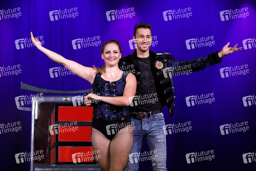 Andre Blake und Assistentin bei der Vorstellung seiner Show in der Volksbühne am Rudolfplatz. Köln, 03.12.2019