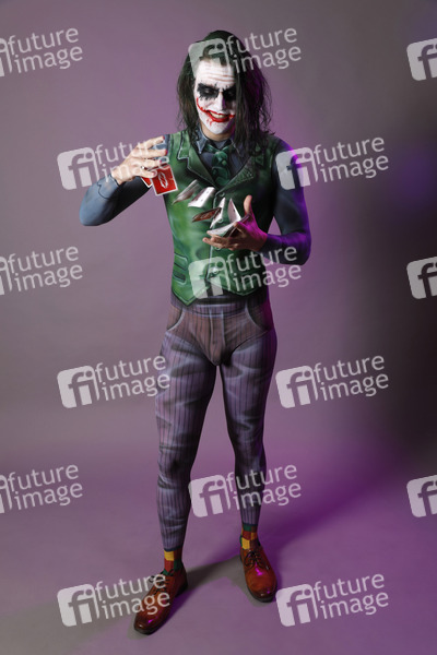 Cosplay, Cosplayer, Bodypainting, Body-Painting, Make-up, Maskenbildnerei, Körperkunst, Körperfarben, Projekt Farbkörper, Farbe, Bemalung, Kunst, Malerei, Comic, DC Comics, Comicfigur, Verbrecher, Psychopath, Batman-Gegner, Spielkarte, Spielkarten, body painting, body art, project color body, colors, colours, villain, comic character, criminal, psychopath, playing card, Batman opponent