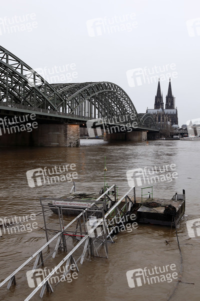 Rheinpegel, Fluss, Rhein, Pegelstand, Pegel, Hochwasser, Rheinboulevard, Pegelmarke, Hochwassermarke, Hochwasserwelle, Scheitelpunkt, Rhein-Pegel, Flussbett, Flut, Schifffahrt, Hochwasserschutz, Wasserstand, Mittelwasser, Tauwetter, Rheinschifffahrt, Rheinufer, Hochwasserschutzzentrale, Hochwasserwelle, Rheinuferpromenade, Pegel-Nullpunkt, Hochwasserlage, Hochwassermeldedienst, Hochwasserinformationsdienst, Wasserstände, Pegelstände, Wetterlage, ansteigendes Wasser, steigender Pegel, Hohenzollernbrücke, Rheinufer, Wetter, Symbolbild, Symbolfoto