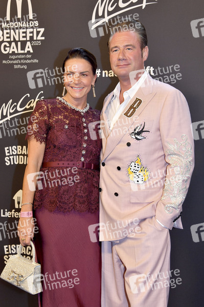 Sasha mit Ehefrau Julia Röntgen bei der 20. McDonald's Benefiz Gala zugunsten der McDonald's Kinderhilfe Stiftung in den Eisbach Studios. München, 06.12.2025