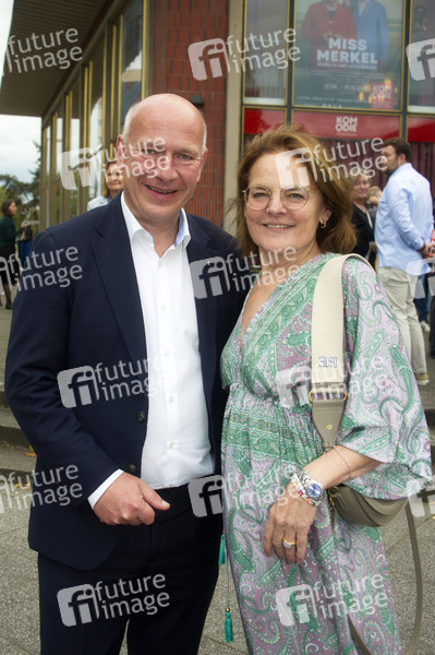 Kai Wegner und Britta Elm bei der Premiere des Theaterstücks 'Miss Merkel - Mord in der Uckermark' in der Komödie am Kurfürstendamm im Ernst-Reuter-Saal. Berlin, 21.09.2025