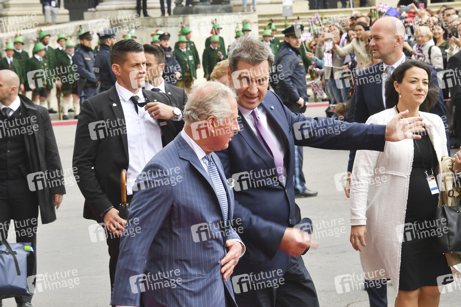 Prinz Charles und Markus Söder bei der Begrüßung der britischen Royals auf dem Max-Joseph-Platz vor der Residenz München. München, 09.05.2019