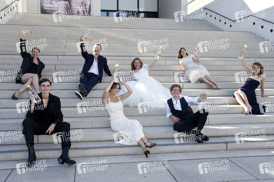 Zygimante Elena Jakstaite (Litauen), Gustav Lindh (Schweden), Albrecht Schuch (Deutschland), Alba Baptista (Portugal), Seidi Haarla (Finnland), Martijn Lakemeier (Niederlande), Natasa Stork (Ungarn) und Sara Klimoska (Nordmazedonien) beim Photocall mit den European Shooting Stars 2021 auf der Berlinale Summer Special 2021 / 71. Internationale Filmfestspiele Berlin auf der James Simon Treppe vor der James-Simon-Galerie. Berlin, 14.06.2021