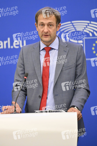 Christophe Hansen bei einer Pressekonferenz zur Verordnung über Entwaldung im Europäischen Parlament. Straßburg, 13.09.2022