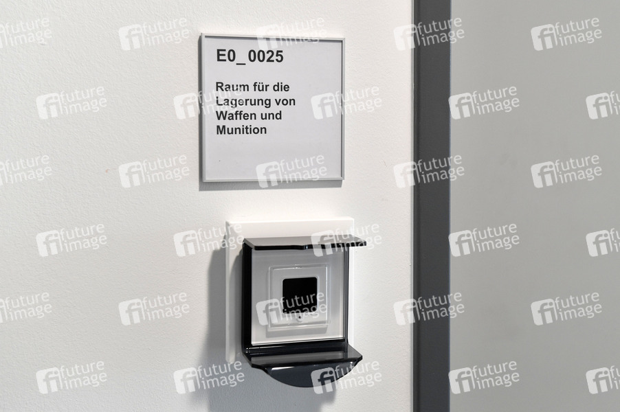 Eingang zu Waffenkammer beim Fototermin anlässlich der Fertigstellung des Dienstgebäudes der Bundespolizei am Flughafen Berlin Brandenburg. Schönefeld, 31.07.2020