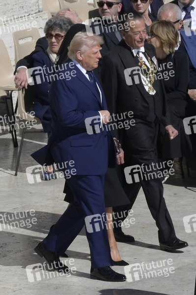 Donald Trump bei der Trauermesse für den verstorbenen Papst Franziskus auf dem Petersplatz. Vatikanstadt, 26.04.2025