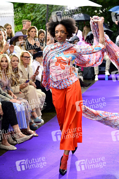 Model bei der Anja Gockel Fashion Show 'Let the Birds Fly' auf der Berlin Fashion Week S/S 2025 im Paris44. Berlin, 02.07.2024