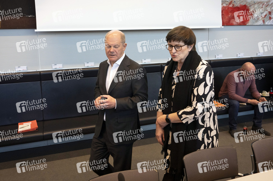 Olaf Scholz und Saskia Esken bei der Fraktionssitzung der SPD-Bundestagsfraktion im Reichstagsgebäude. Berlin, 10.03.2025