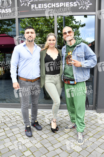 Marco Huck, Yvonne Woelke und Eric Sindermann bei der Pressekonferenz zum Boxkampf Eric Sindermann vs. Jörg Hansen im REDO XXL Friedrichshain. Berlin, 10.06.2024