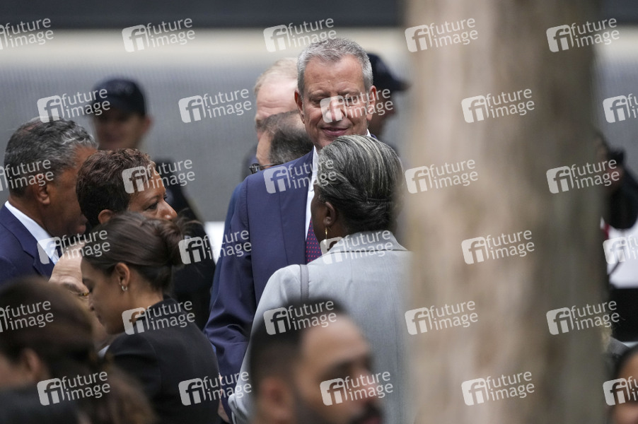 Bill de Blasio bei der Gedenkfeier für die Opfer der Terroranschläge vor 21 Jahren am 9/11 Memorial. Mit Schweigeminuten und der Verlesung der Namen der fast 3000 Todesopfer haben die USA am Sonntag an die Terroranschläge vom 11. September 2001 erinnert. Am früheren Standort des World Trade Centers in New York verlasen Angehörige wie jedes Jahr am 11. September die Namen aller Anschlagsopfer. New York, 11.09.2022