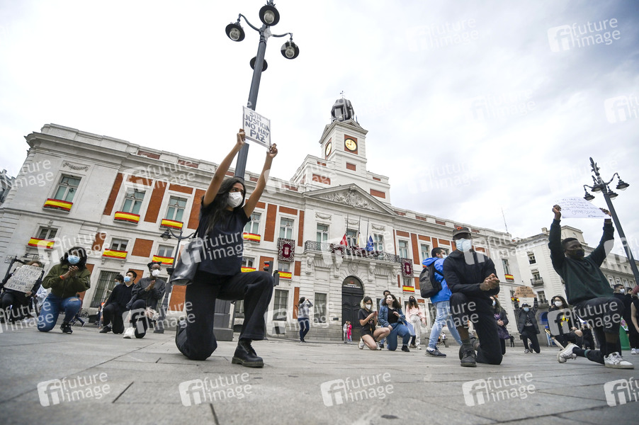 Demonstration zum Tod des Afroamerikaners George Floyd durch einen Polizisten am vergangenen Montag in Minneapolis auf dem Puerta del Sol. Madrid am 31.05.2020