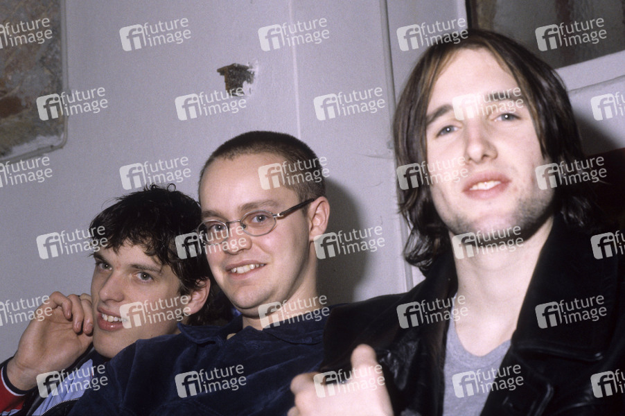 Mark Hamilton, Rick McMurray und Tim Wheeler von Ash bei einem Fototermin in der Hechelei. Bielefeld, 01.02.1997