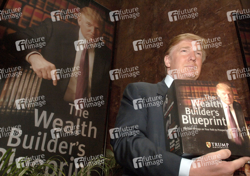 Donald Trump bei einer Pressekonferenz zu Bekanntgabe der Gründung einer Trump University im Trump Tower. New York, 26.05.2005