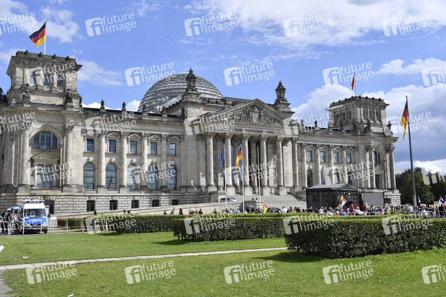 Tausende Menschen demonstrieren gegen die Coronavirus-Auflagen. Die selbsternannten Reichsbürger versammeln sich vor dem Reichstagsgebäude. Berlin, 29.08.2020.