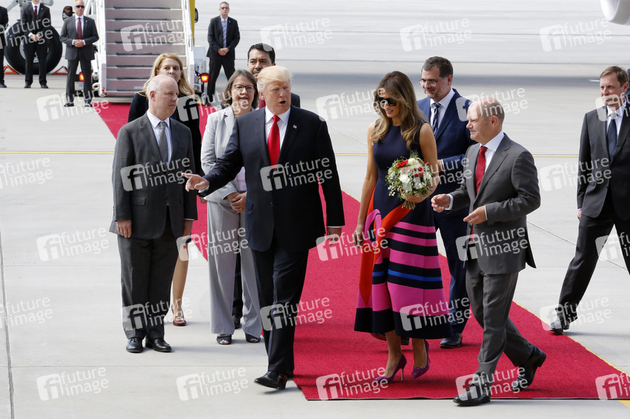 Donald Trump mit Gattin Melania und Olaf Scholz bei der Ankunft zum 12. G20-Gipfel 2017 auf dem Hamburg Airport. Hamburg, 06.07.2017