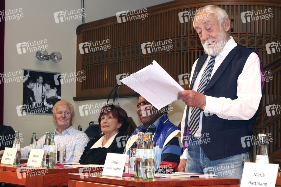 Peter Bause, Brigitte Grothum, Roberto Blanco und Dieter Hallervorden bei der Jahres-Pressekonferenz für die Spielzeit 2021/22 im Schlosspark Theater. Berlin, 24.08.2021
