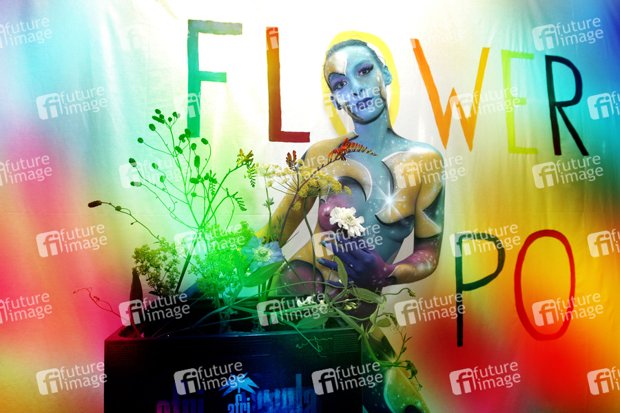 Bodypainting, Erotik, Frau, nackt, drinnen, weiblich, Flower Power, Afri Cola, Blumen, erotic, woman, nude, indoor, female, flowers