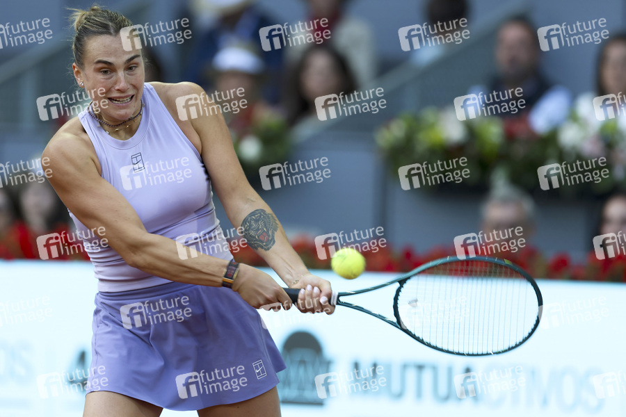 Aryna Sabalenka beim Final-Match Gauff vs Sabalenka vom Mutua Madrid Open 2025 Tennisturnier im Sportkomplex Caja Mágica. Madrid, 03.05.2025