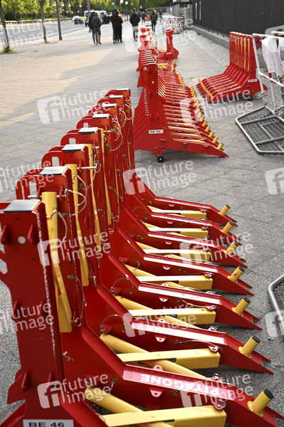 Zufahrssperren am Sowjetisches Ehrenmal Tiergarten. Mobile Sicherheitsperren werden von Institutionen wie Städten, Kommunen, Polizei, Militär und Regierungsbehörden gegen Fahrzeugattacken eingesetzt. (Symbolfoto, Themenfoto) Berlin, 08.05.2025
