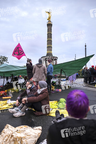 Aktivisten der Klimabewegung 'Extinction Rebellion' blockieren den Großen Stern an der Siegessäule. Berlin, 08.10.2019