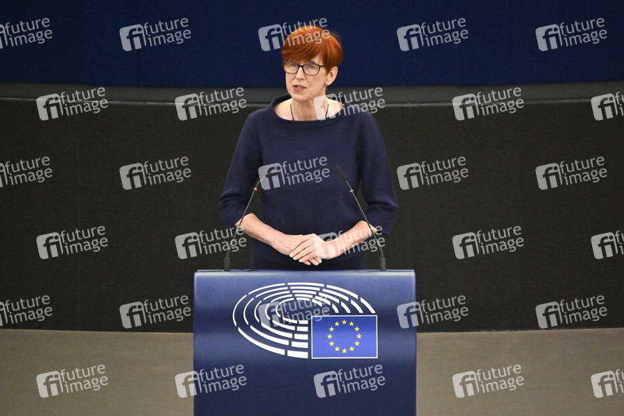 Elzbieta Rafalska bei einer Debatte über die Lage ausgegrenzter Roma-Gemeinschaften in der EU im Plenarsaal des Europäischen Parlaments. Straßburg, 07.04.2022