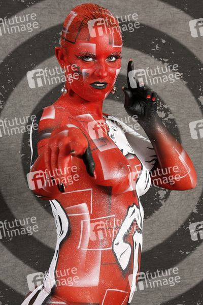 Bodypainting und Fotoshooting mit Model Sabine im Media Markt Hameln, anlässlich des 29. Tag der Niedersachsen. Künstler: Jörg Düsterwald