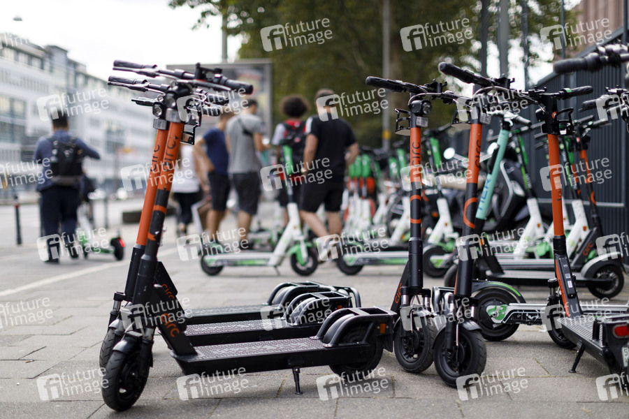 E-Scooter der Anbieter Circ und Lime stehen an der Messe. Köln, 20.08.2019