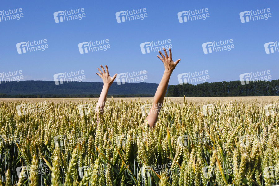 Arme im Getreidefeld