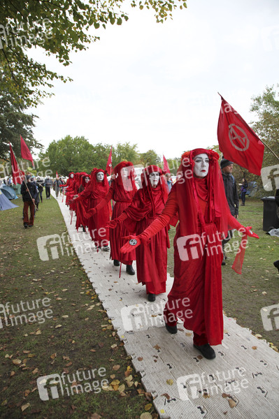 The Red Rebel Brigade der Umweltschutzgruppe 'Extinction Rebellion' am Bundeskanzleramt. Berlin, 11.10.2019
