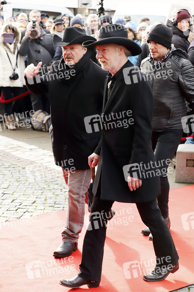 Andreas Cisek und Teddy Ibing von Truck Stop bei der Trauerfeier für Jan Fedder in der Hauptkirche St. Michaelis. Hamburg, 14.01.2020