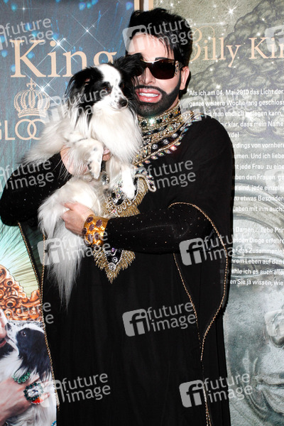 Hund Billy King und Harald Gloeoeckler bei der Buchvorstellung 'Billy King - mein Leben mit Harald Glööckler'. Berlin, 28.02.2013
