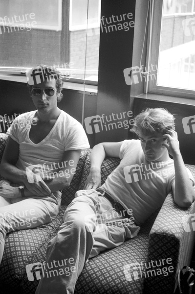 Jon King und Andy Gill von Gang of Four bei einem Interview und Photoshooting bei EMI- Records. London, 31.08.1983