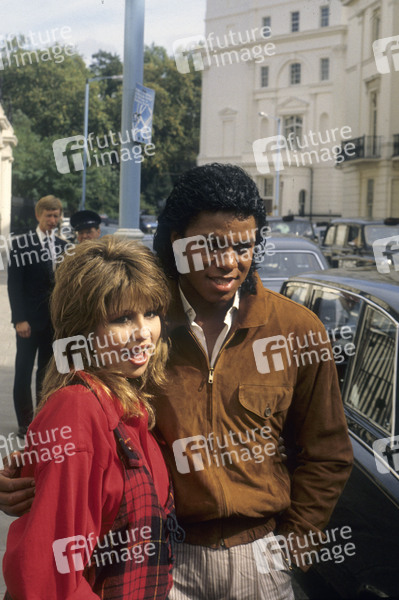 Pia Zadora und Jermaine Jackson beim Photocall vor einem Hotel. London, 10.09.1984