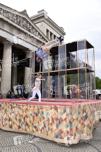 Akrobatik der Truppe Non Stop vom Circus Krone bei der Demonstration 'Aufstehen für Kultur 2' auf dem Königsplatz. München, 13.05.2021