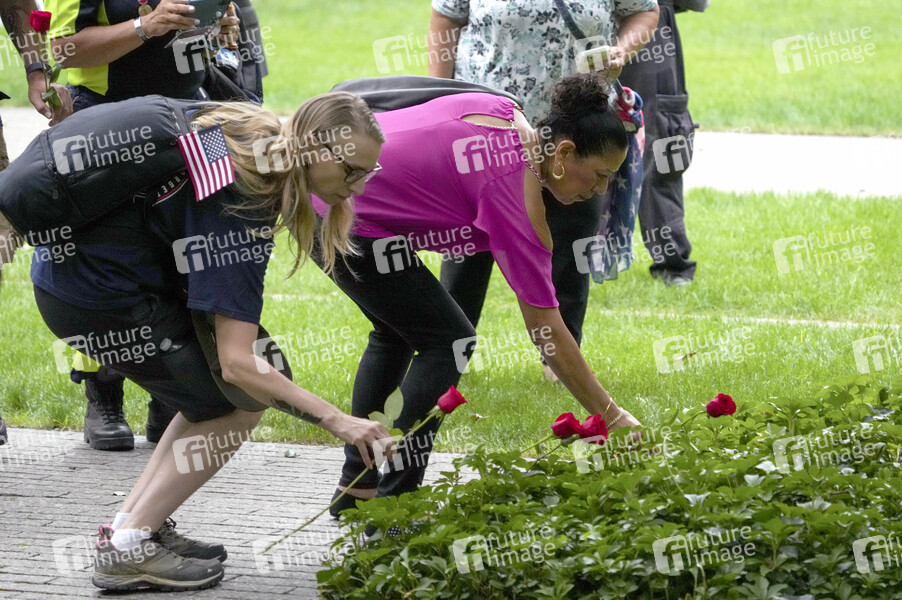 Angehörige der Opfer bei der Gedenkfeier für die Opfer der Terroranschläge vor 21 Jahren am 9/11 Memorial. Mit Schweigeminuten und der Verlesung der Namen der fast 3000 Todesopfer haben die USA am Sonntag an die Terroranschläge vom 11. September 2001 erinnert. Am früheren Standort des World Trade Centers in New York verlasen Angehörige wie jedes Jahr am 11. September die Namen aller Anschlagsopfer. New York, 11.09.2022