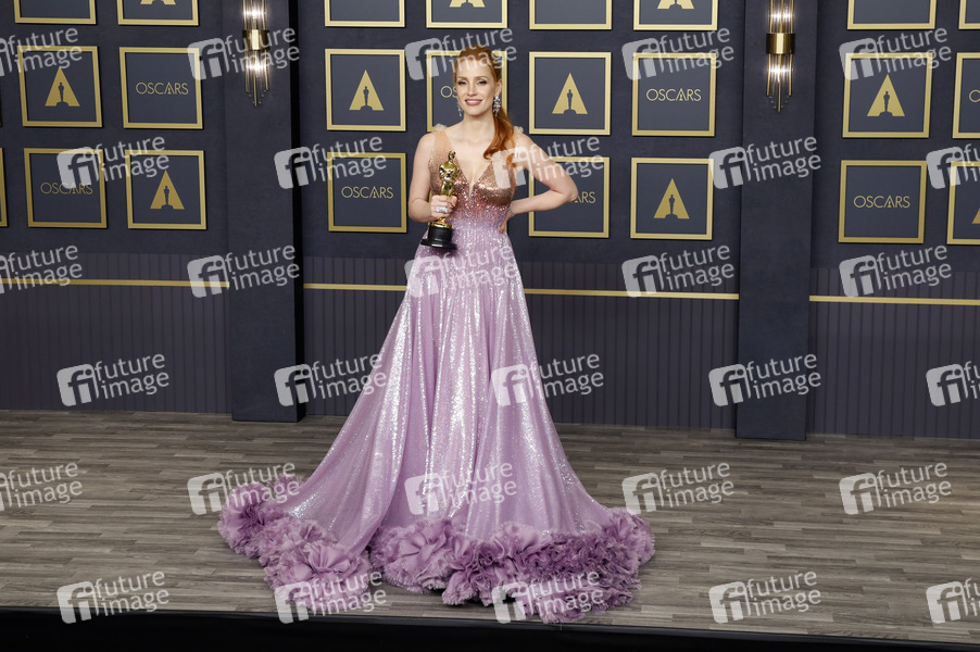 Jessica Chastain mit dem Oscar für die beste Hauptdarstellerin in 'The Eyes of Tammy Faye' im Press Room der Oscar Verleihung 2022 / 94th Annual Academy Awards im Hollywood & Highland Center. Los Angeles, 27.03.2022
