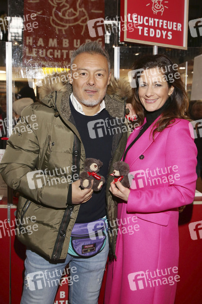 Rodolfo Esteban Cardoso und Angela Roy beim 25. Charity Teddybären Verkauf zugunsten von Leuchtfeuer im Hauptbahnhof. Hamburg, 17.11.2022
