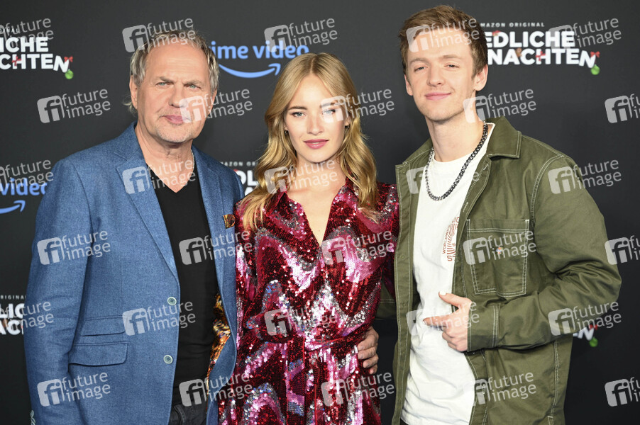 Uwe Ochsenknecht, Valerie Huber und Timur Bartels bei der Premiere der Amazon Prime Streaming-Serie 'Friedliche Weihnachten' in der Astor Filmlounge im ARRI Kino. München, 01.12.2022