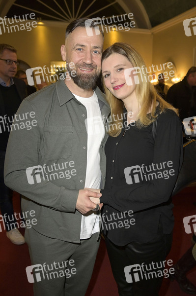 Bürger Lars Dietrich mit Ehefrau Hannah Baus bei der Premiere des Theaterstücks 'Achtsam morden' im Schlosspark Theater. Berlin, 23.03.2024