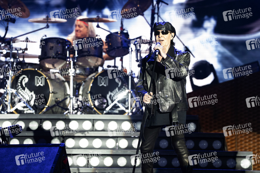 Mikkey Dee und Klaus Meine von den Scorpions live bei der Konzertreihe 'Moon&Stars 2025' auf der Piazza Grande. Locarno, 12.07.2025