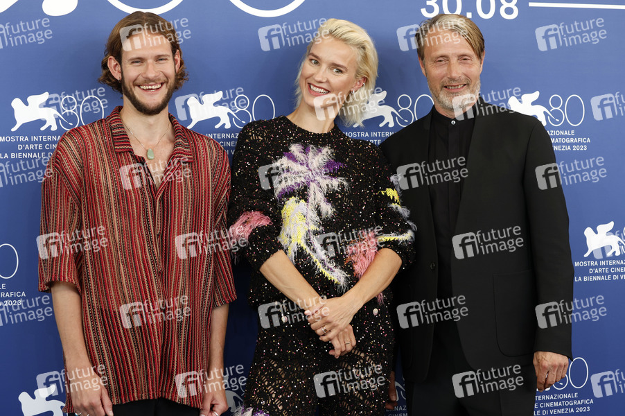 Simon Bennebjerg, Amanda Collin und Mads Mikkelsen beim Photocall zum Kinofilm 'Bastarden / The Promised Land' auf der Biennale di Venezia 2023 / 80. Internationale Filmfestspiele von Venedig im Palazzo del Casino. Venedig, 01.09.2023