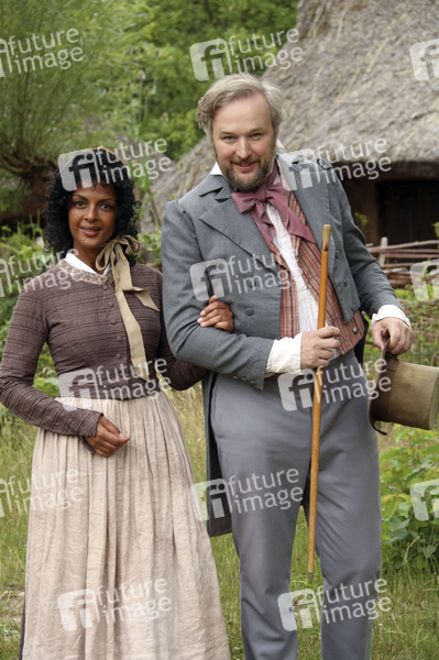 Dennenesch Zoude und Stephan Grossmann beim Pressefototermin am Set des Märchenfilms 'Das Märchen vom goldenen Taler' für die ARD-Märchenreihe 'Sechs auf einen Streich' im Museumsdorf Düppel. Berlin, 08.07.2020