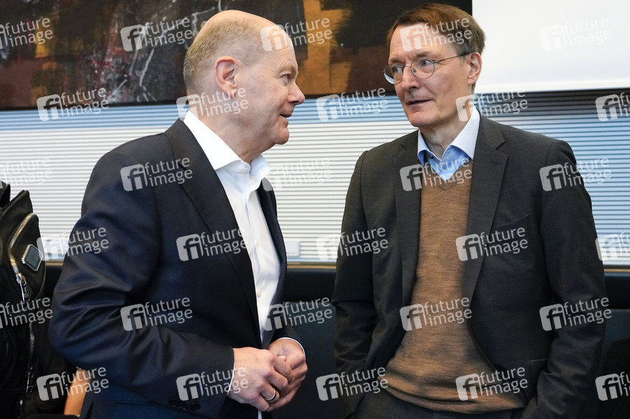 Olaf Scholz und Karl Lauterbach bei der Fraktionssitzung der SPD-Bundestagsfraktion im Reichstagsgebäude. Berlin, 15.10.2024