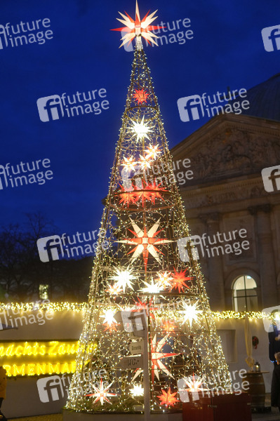 Christbaum aus Lichterketten Sternen auf dem Weihnachtsmarkt WeihnachtsZauber Gendarmenmarkt 2024 auf dem Bebelplatz an der Staatsoper. Berlin, 27.11.2024